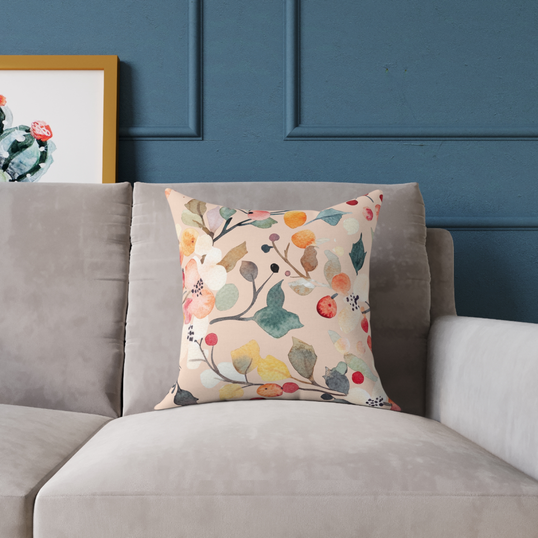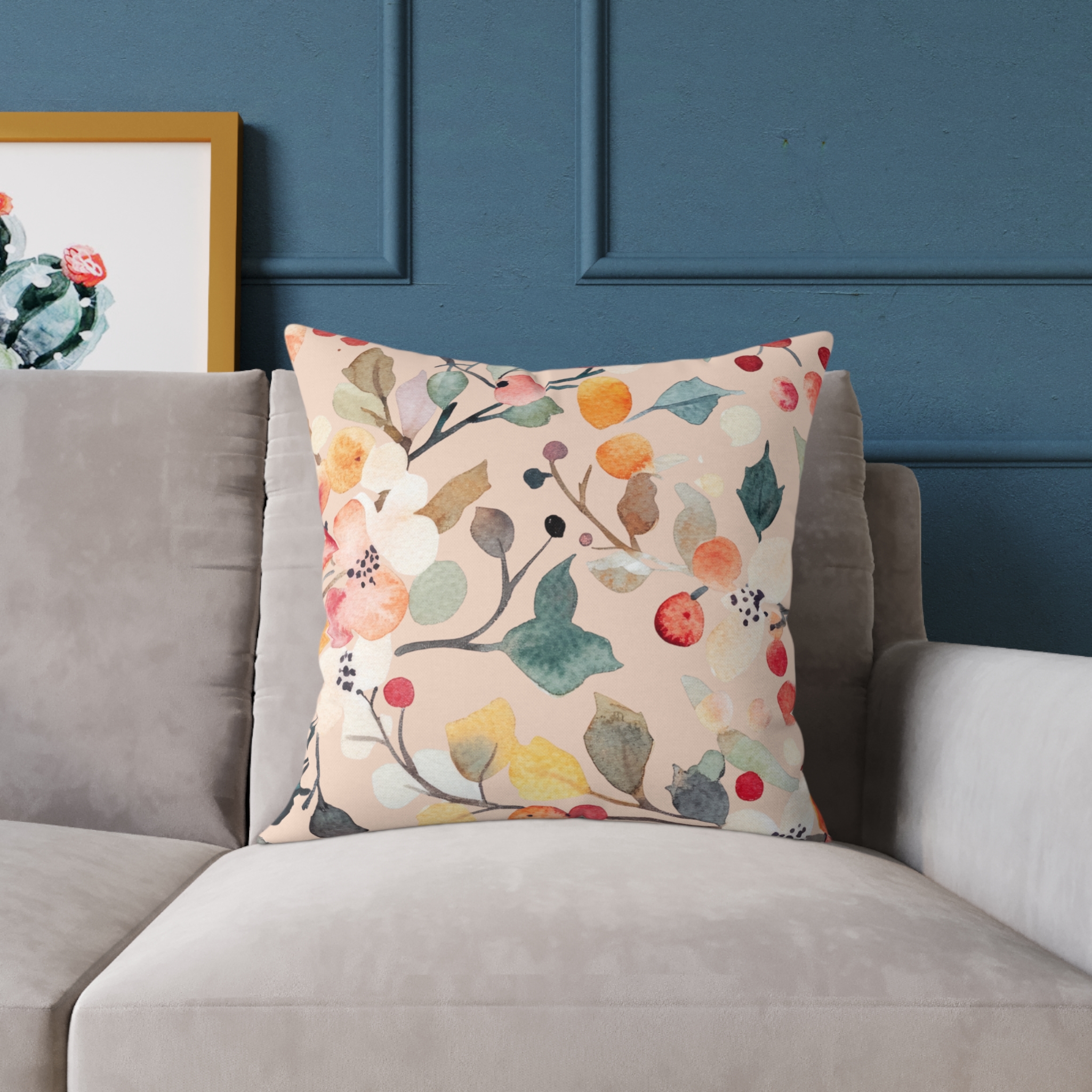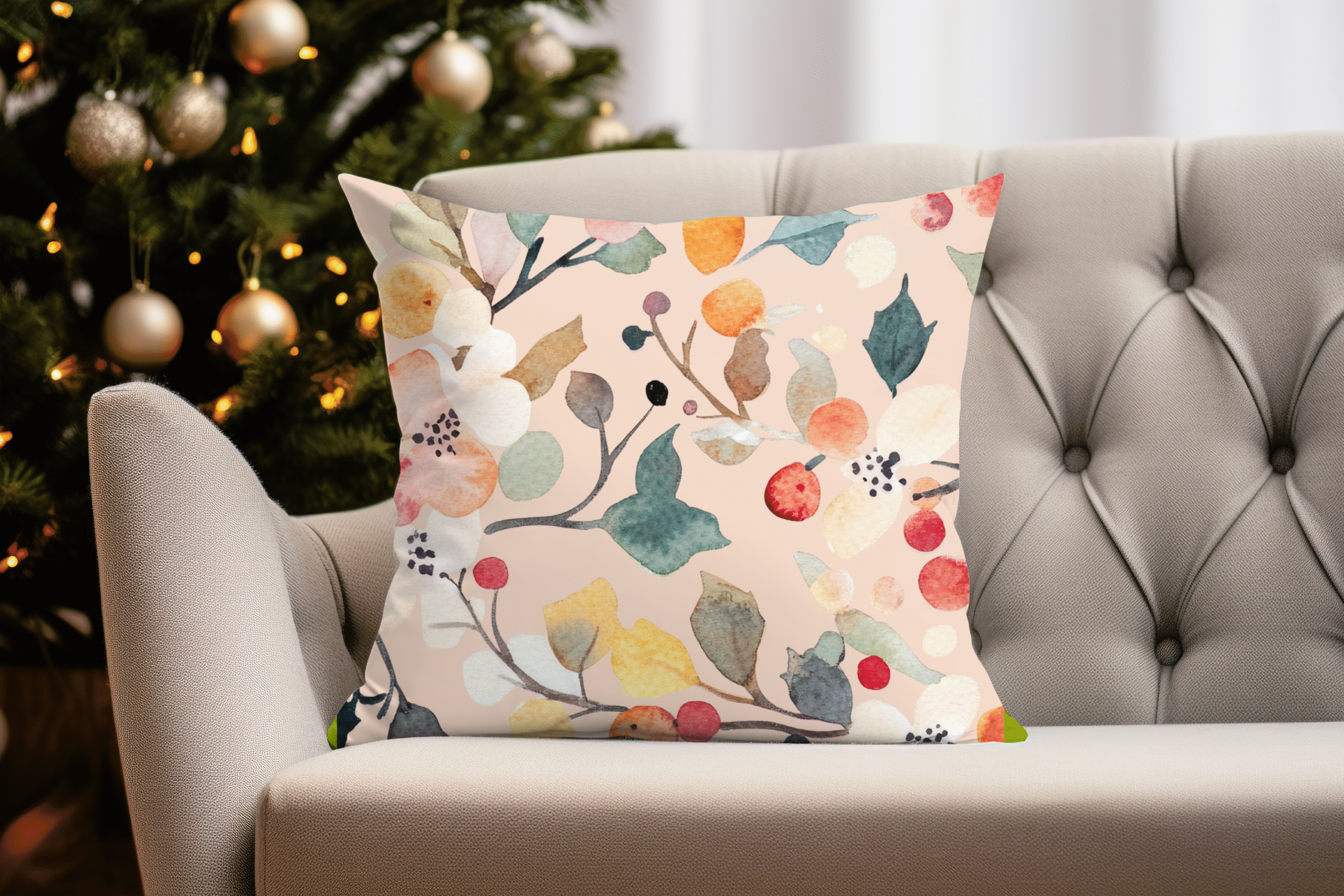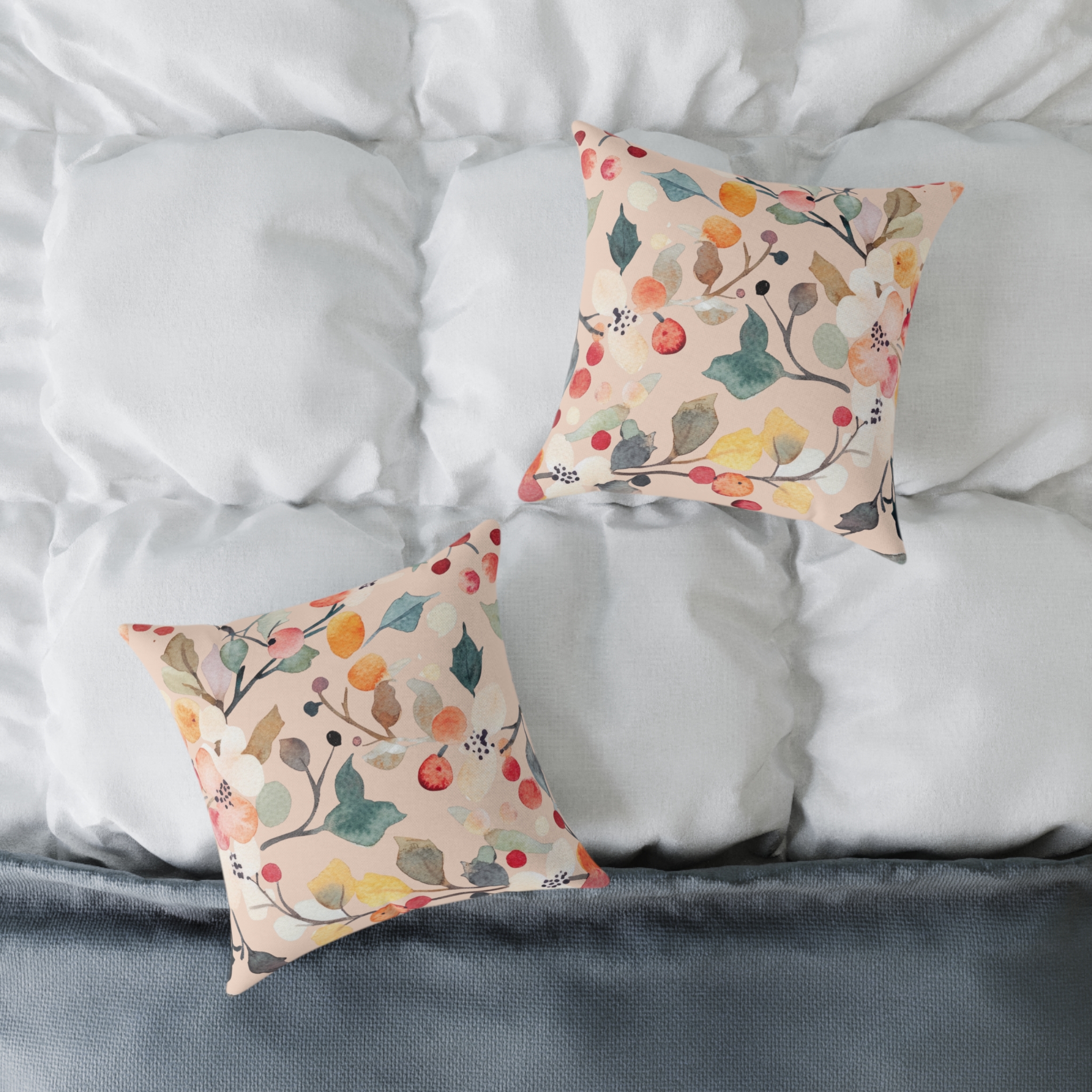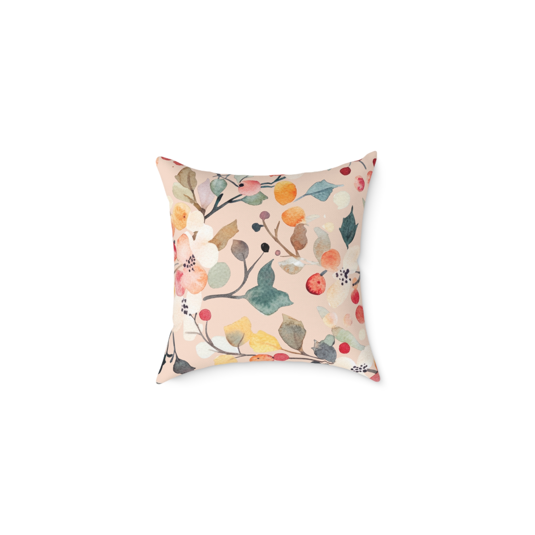 🛋️ Berry Frost Peach Floral Watercolor Throw Pillow – Cozy Holiday & Everyday Decor