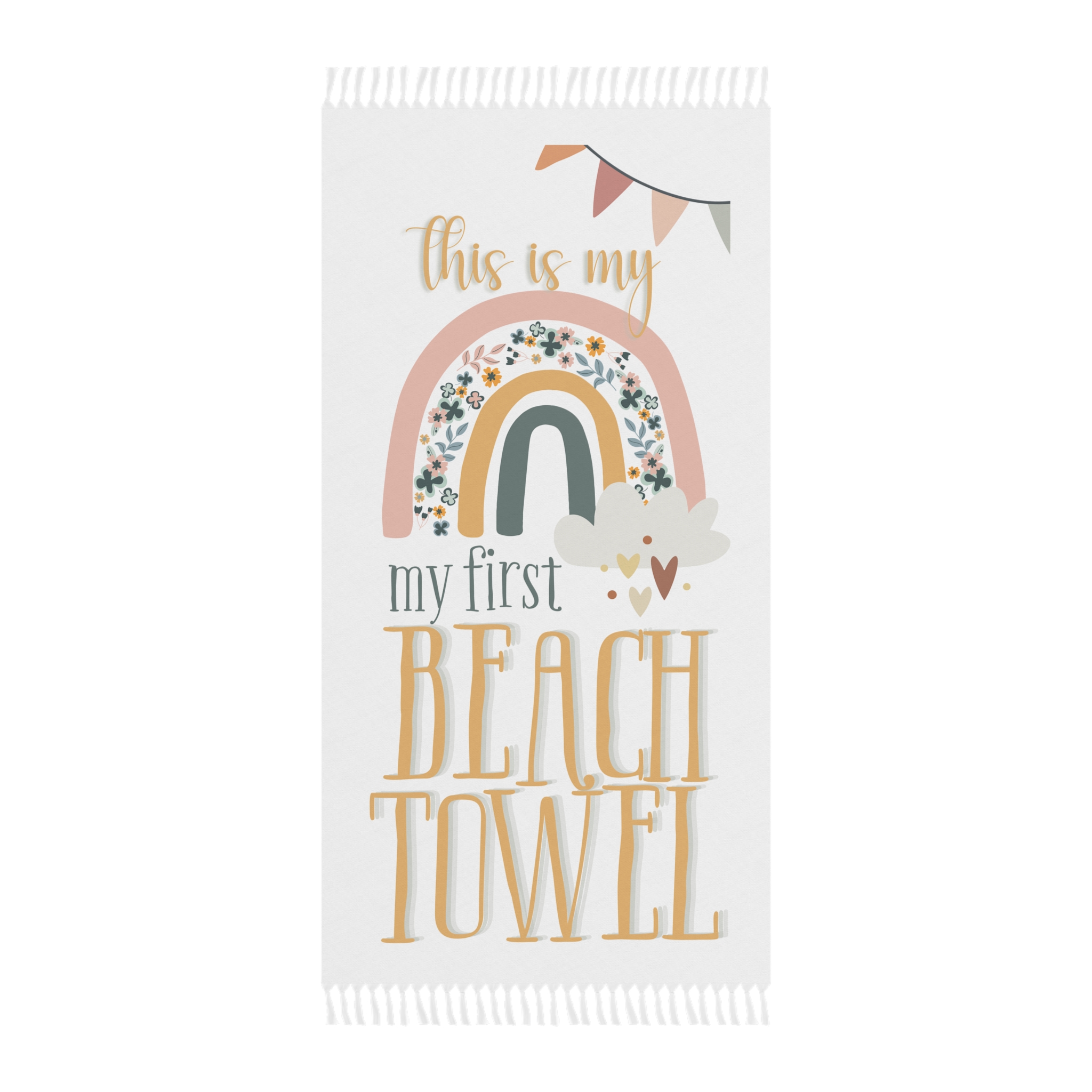 This adorable boho style beach towel is perfect for baby’s first beach experience. With muted pinks and adorable rainbow, it keeps baby dry and sand-free. Ideal for beach, lake, or pool outings, this towel is a fun way to commemorate baby’s firsts. Relevant for parents looking for a cute and practical gift for their little one, especially during summer and beach holidays.