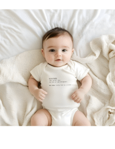 This Boss Baby onesie, made of fine jersey, is a fun addition to any baby’s wardrobe. This simple approach onesie can be paired with any outfit for baby and is suitable for everyday wear.