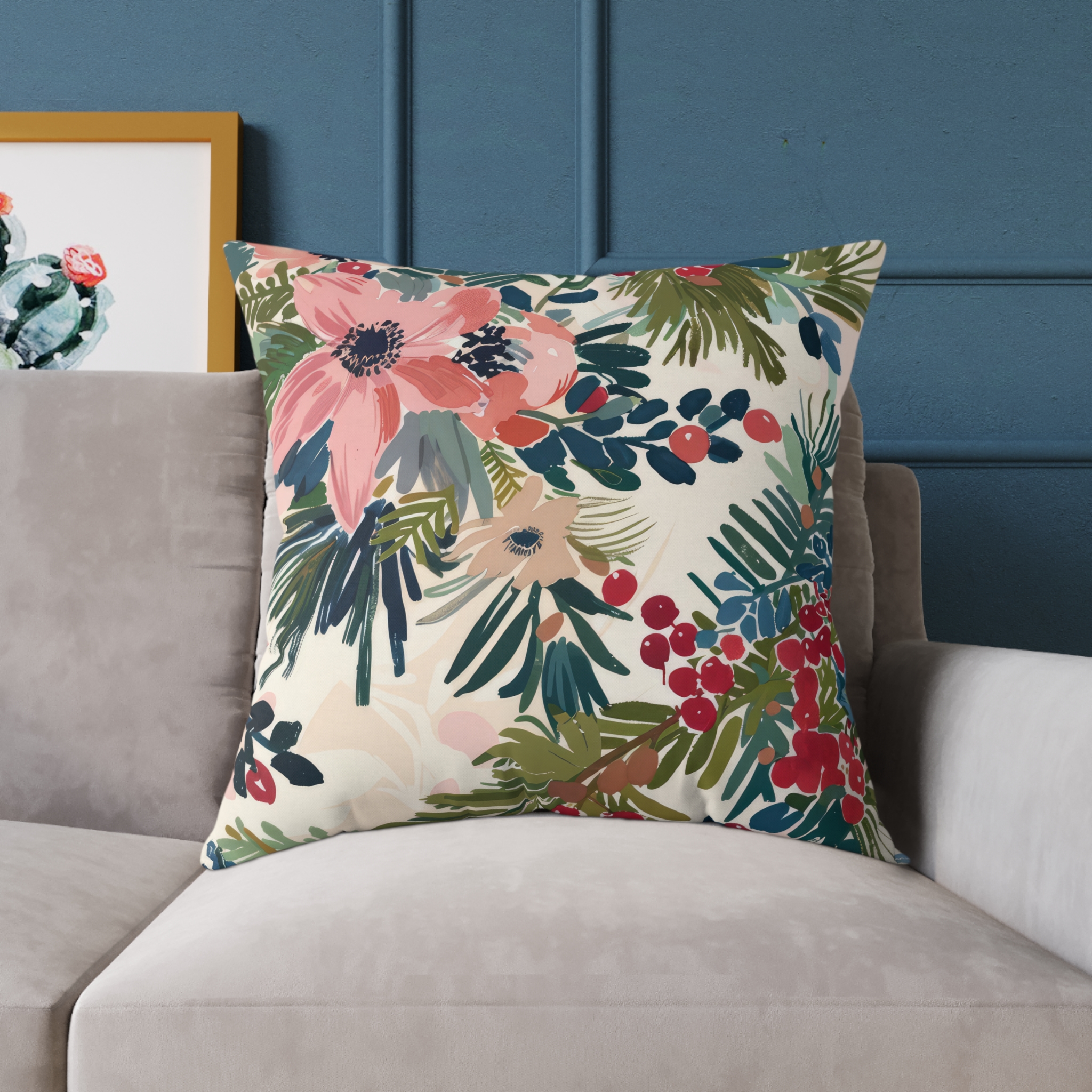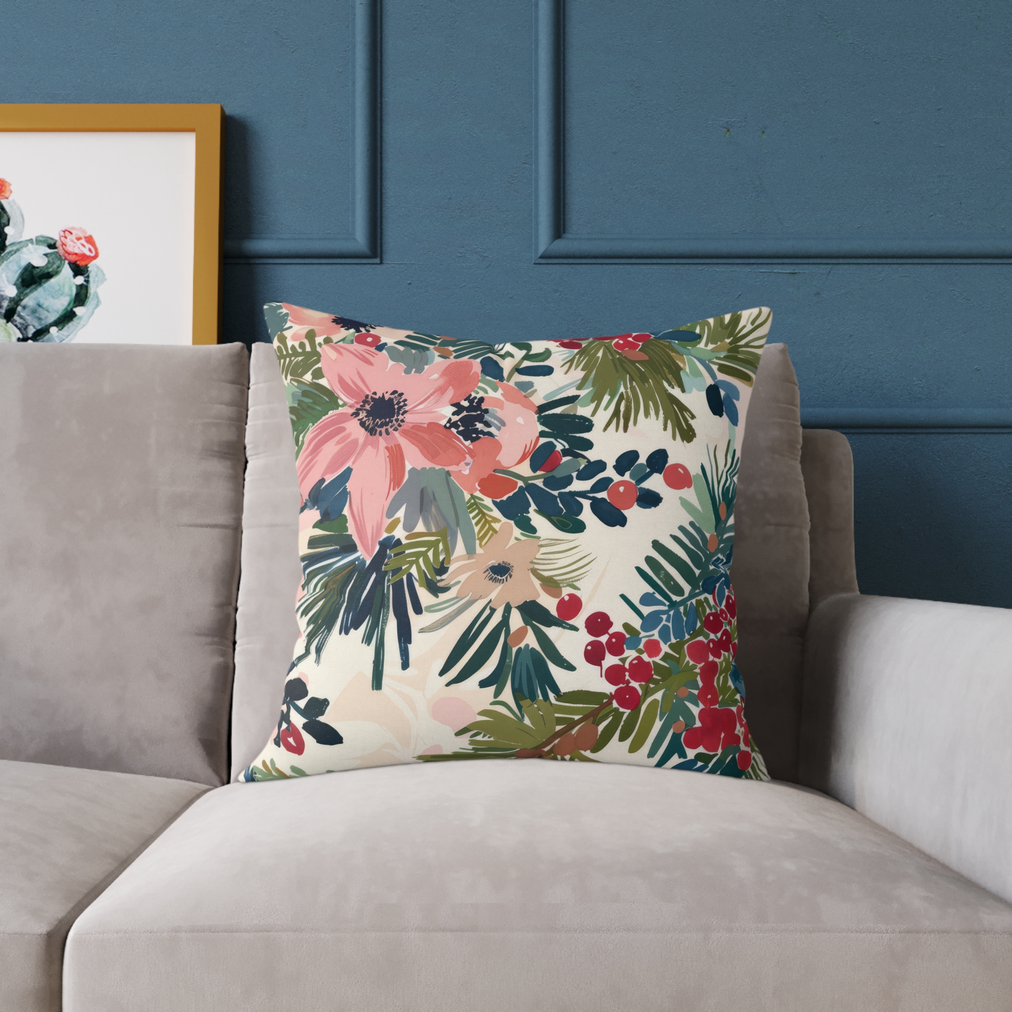 🎄 Frosted Poinsettia Christmas Pillow – Watercolor Holiday Floral Throw Pillow