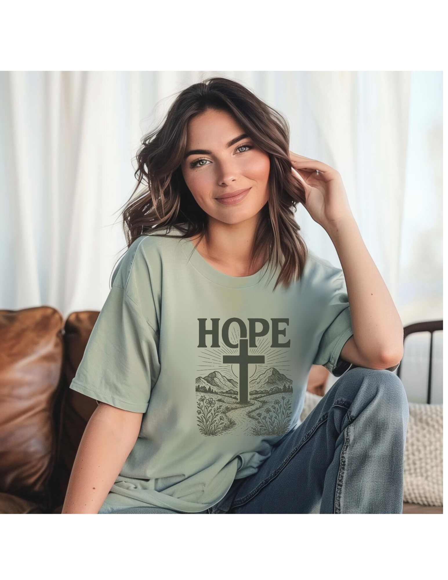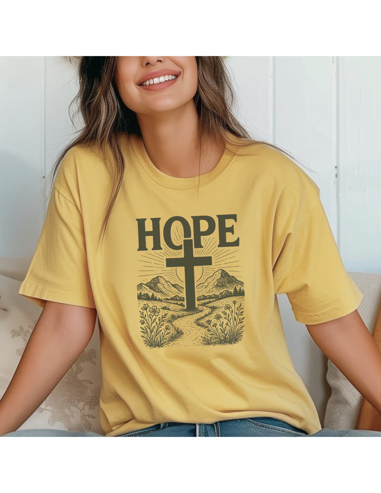 This Hope Tee is perfect for believers that want to spread the good news of Hope in a practical way, a witness to Christ in your everyday life…one comfortable tee at a time!