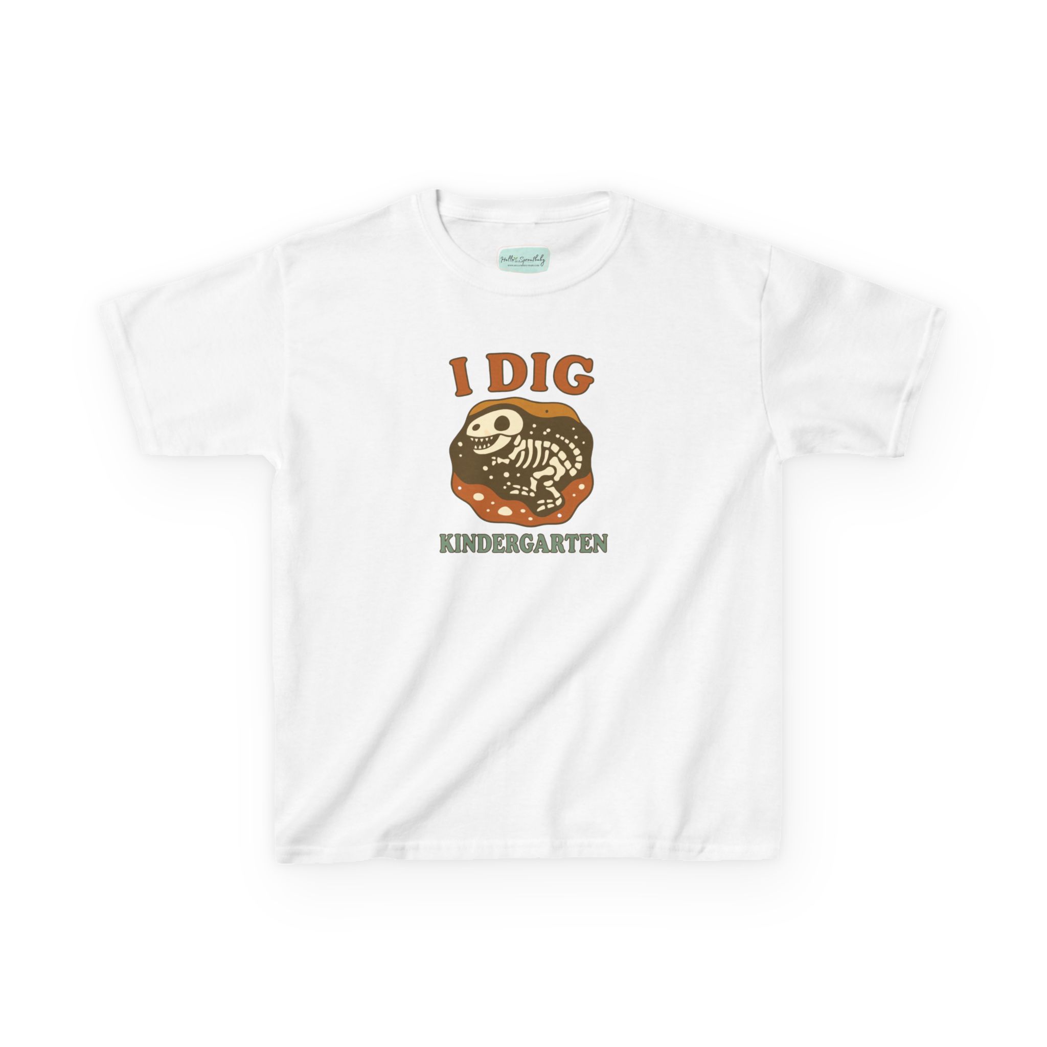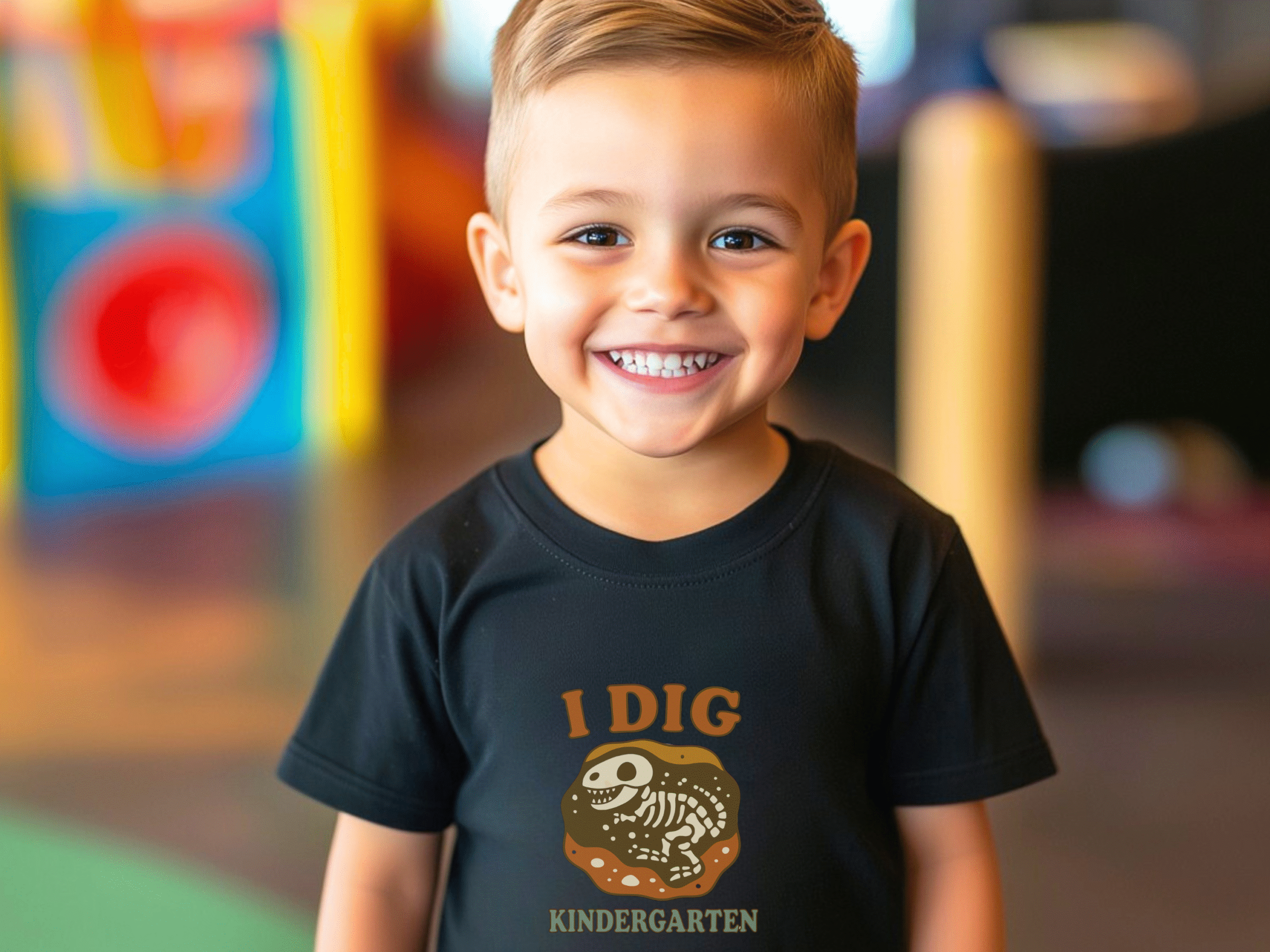 Digging into Kindergarten fun! Your little one’s big day just got even cuter with this “I Dig Kindergarten” shirt featuring an adorable dino fossil design perfect for starting school with a smile. This comfortable cotton tee will be the talk of your child’s class, giving off a fun and cute vibe. Ideal for kids heading back to school or any dinosaur enthusiast. This tee fits seamlessly into any child’s wardrobe, ensuring that they feel confident and happy all day long, especially during the school season and family celebrations.