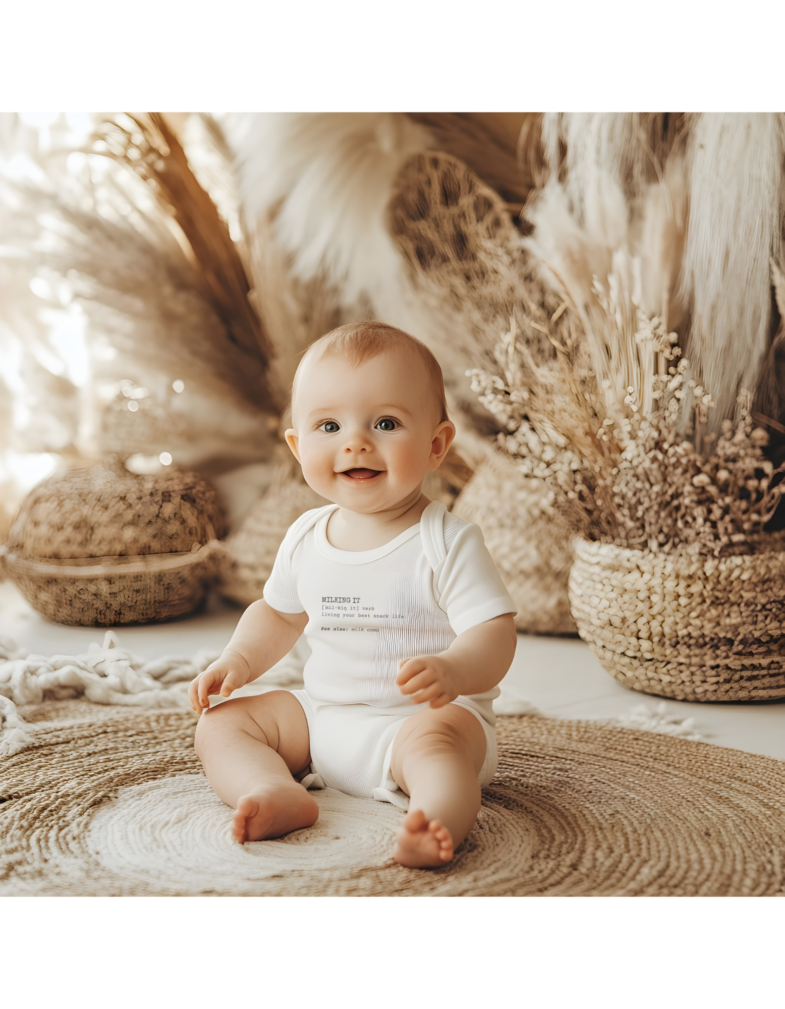 This Milking It onesie is a fun addition to any baby’s wardrobe. Dictionary Definition Print Baby Bodysuit of Infant Fine Jersey is a simple approach onesie which can be paired with any outfit for baby and is suitable for everyday wear.Product features