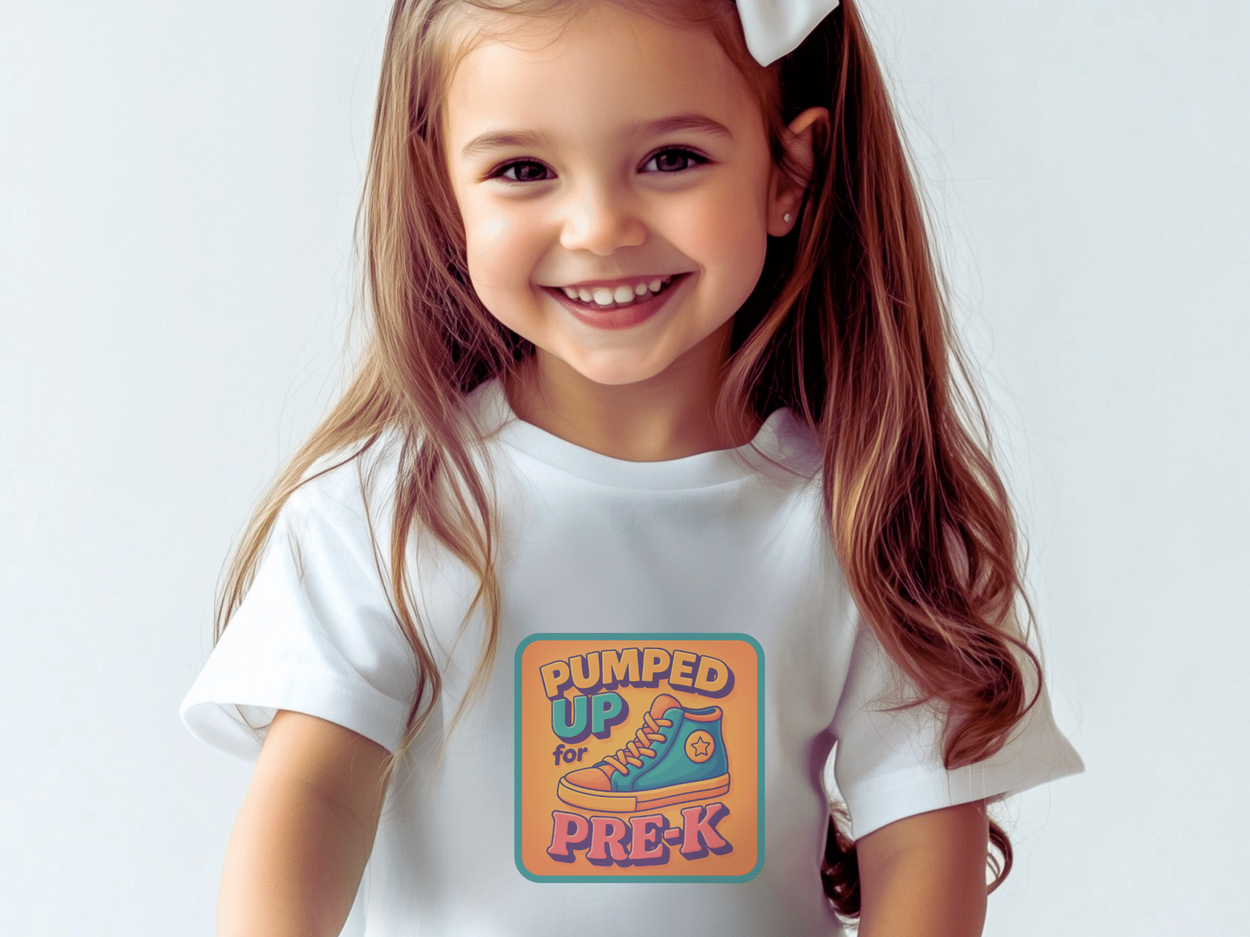 Get your child pumped up for Pre-K with this trendy high top sneaker graphic tee, perfect for the first day of school and beyond. Empower your child to face the new school year with joy and excitement, making new friends along the way. A conversation starter and ice breaker, this comfortable tee is a must-have for any child’s wardrobe this school year. (For smaller size options check out the listing entitled Toddler Pumped Up for Pre-K High Top Sneaker. Please be aware that the price variations in tees are reflected completely by differing brands offered.)