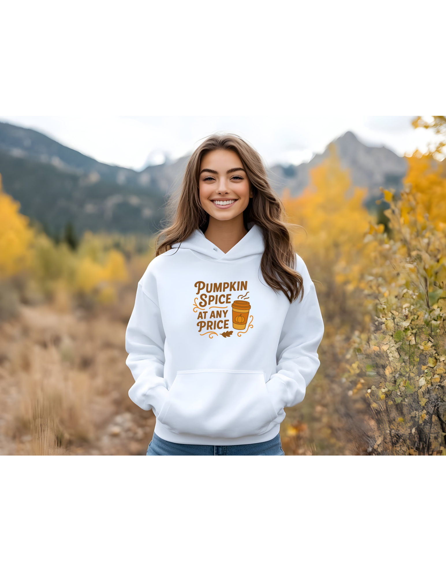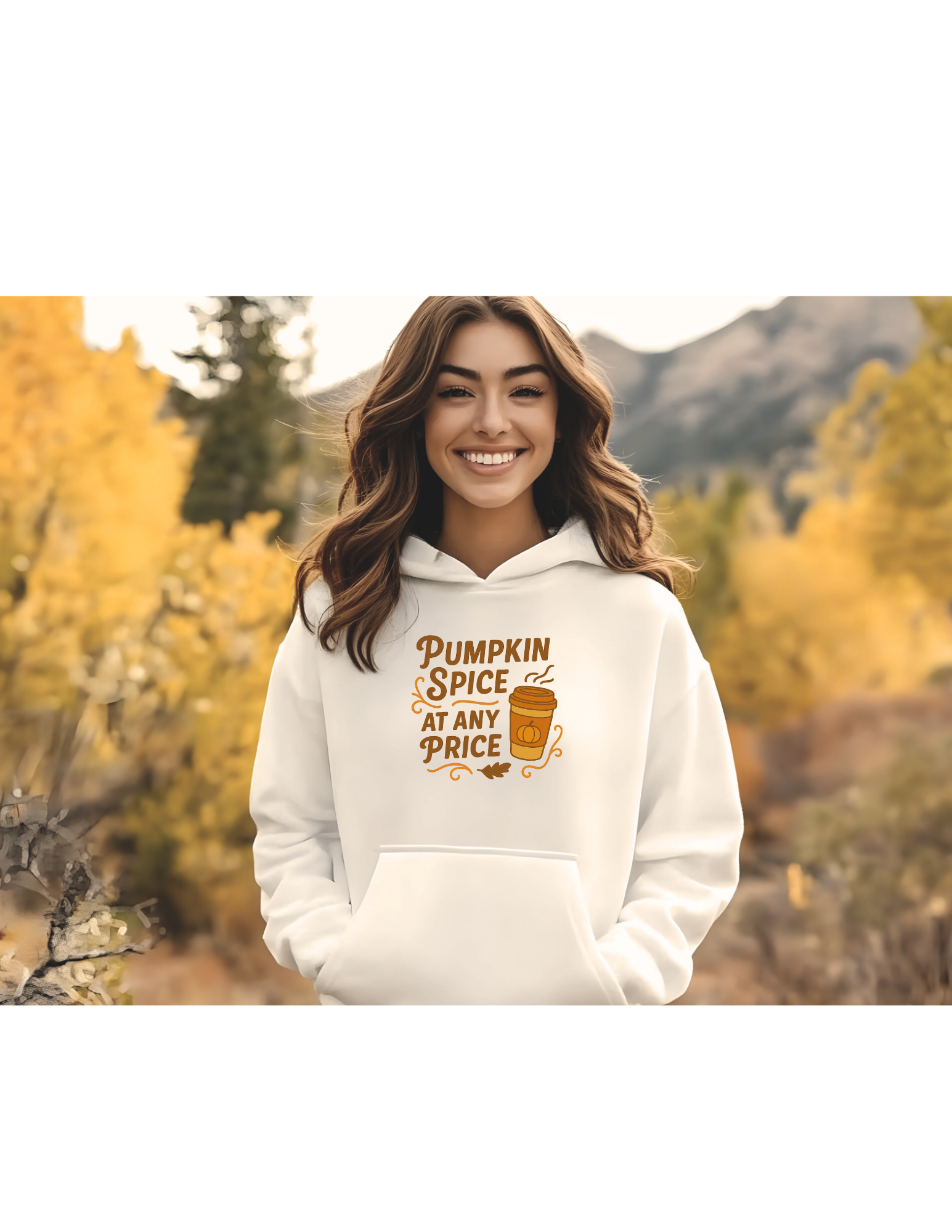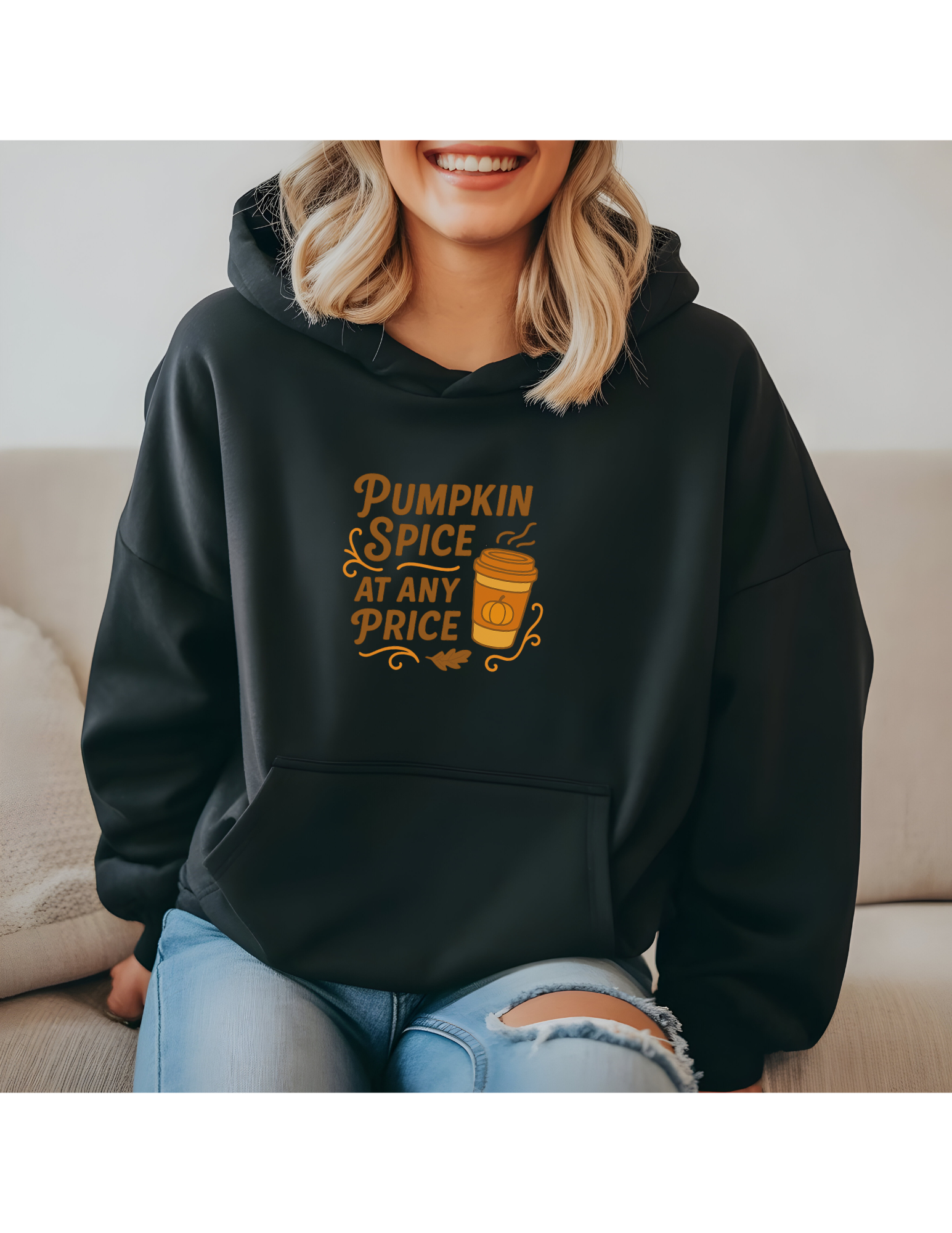 - 1 cozy hoodie featuring “Pumpkin Spice at Any Price” design