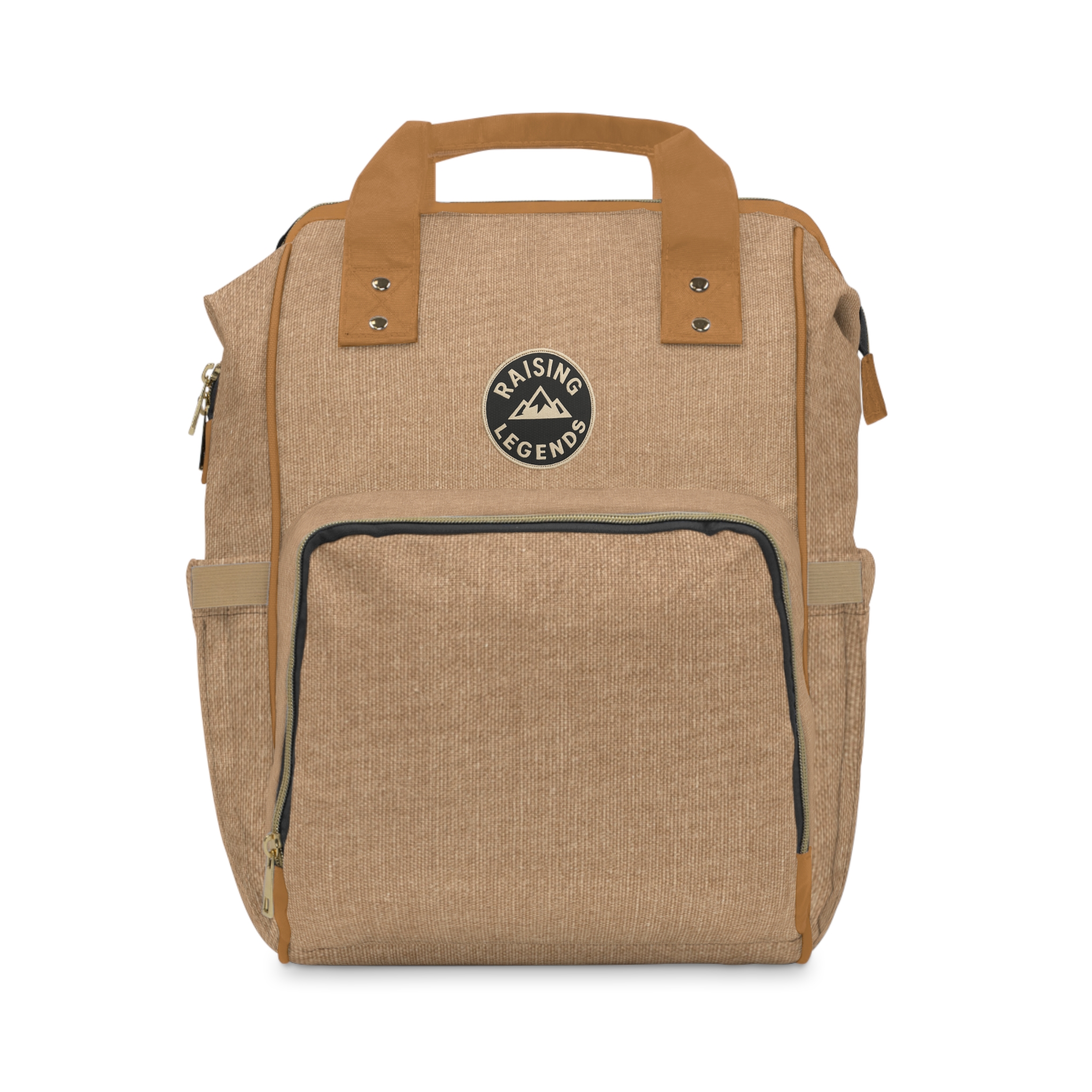 This multifunctional Raising Legends diaper backpack is perfect for stylish dads, boy moms, or nature enthusiasts who want a versatile and durable bag to carry all of their baby’s essentials. With a rustic burlap canvas textured look and ample storage space, this backpack is ideal for daily use or outdoor adventures. Featuring a graphic with a faux patchwork look , this accent of “Raising Legends” makes dad, or mom, look and believe that they are in fact not only changing diapers they are changing the world. The adjustable shoulder straps and tear-resistant nylon material make it comfortable to wear and long-lasting. Perfect for parents who love to be organized and on the go, this backpack is perfect for Father’s Day, baby showers and just because.