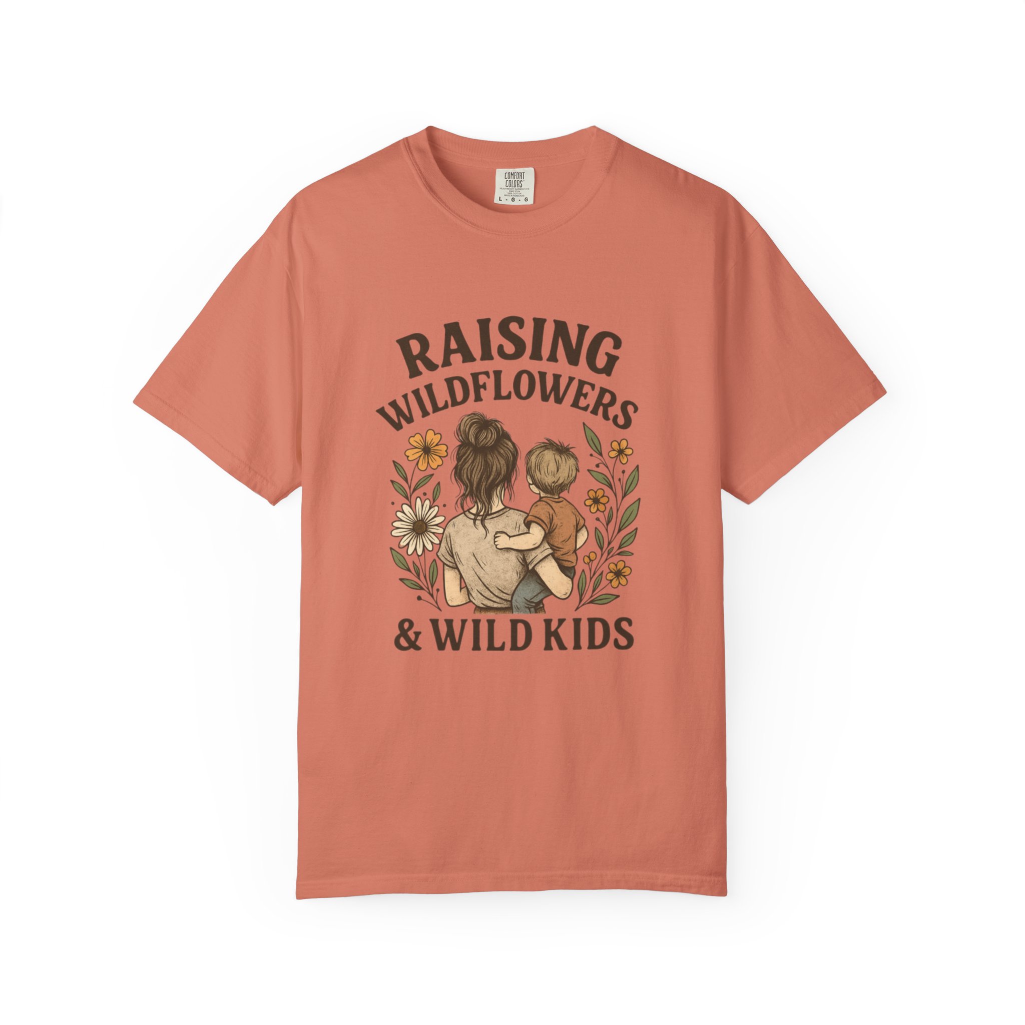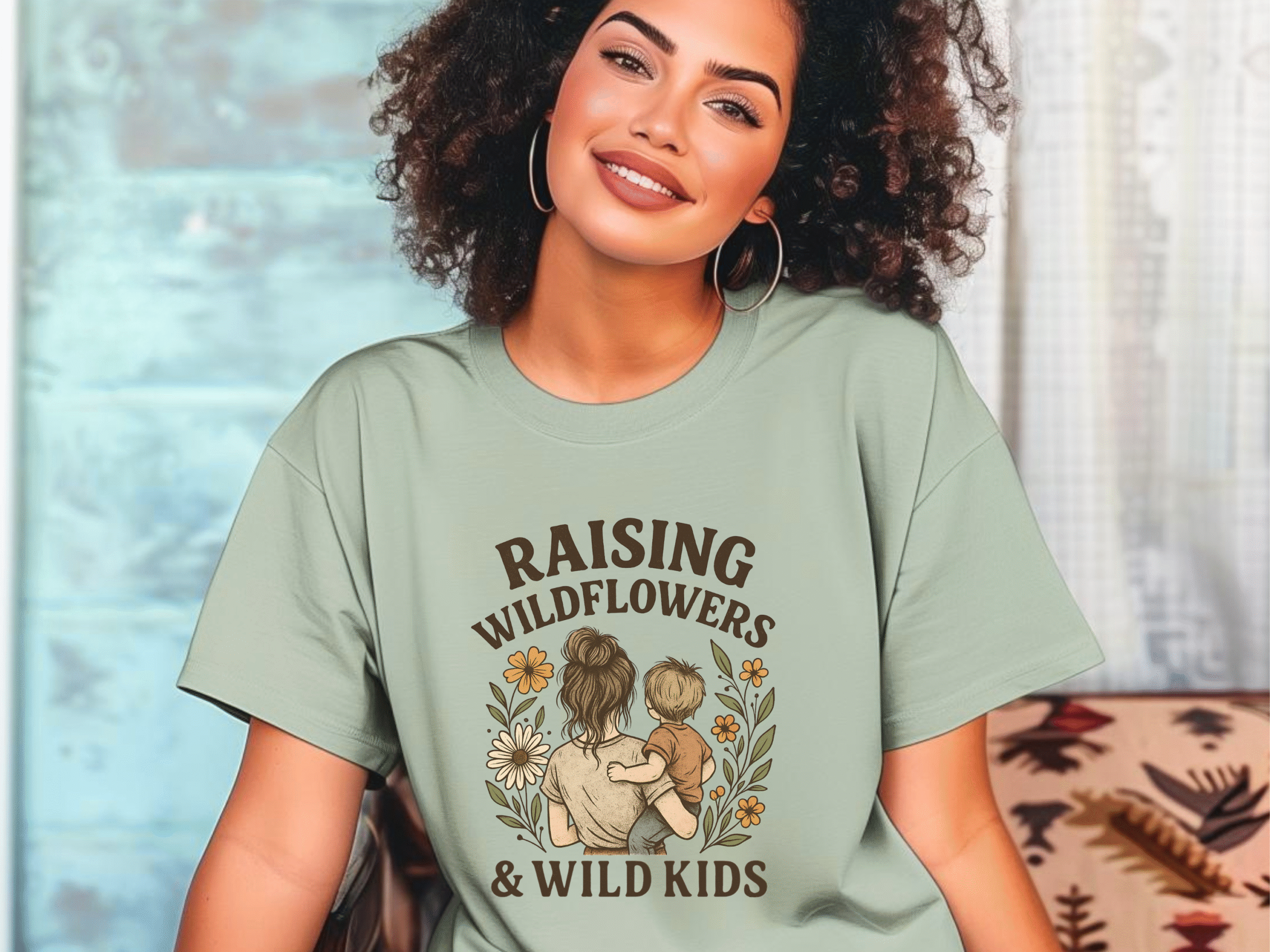 The Raising Wildflowers and Wild Kids Mom tee is a trendy and comfortable shirt featuring a beautiful graphic of a mom and toddler among wildflowers. This shirt is perfect for everyday wear and makes a great gift for moms, baby showers, Mother’s Day, and Christmas. Available in a variety of sizes and trendy colors to suit any wardrobe.