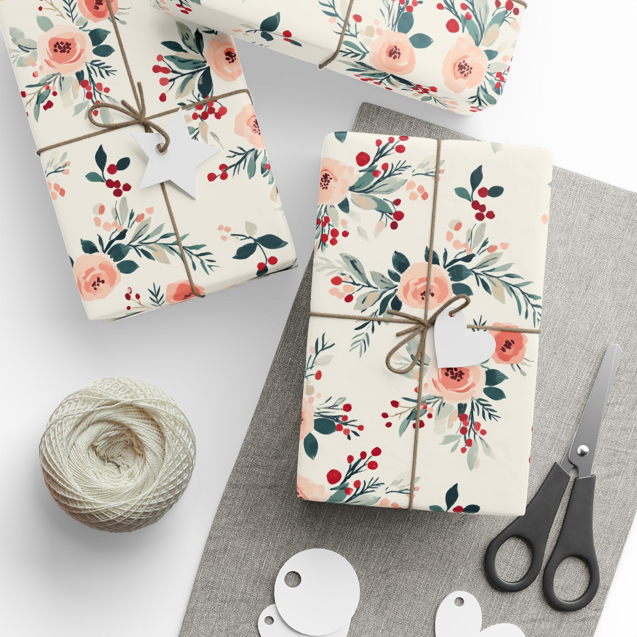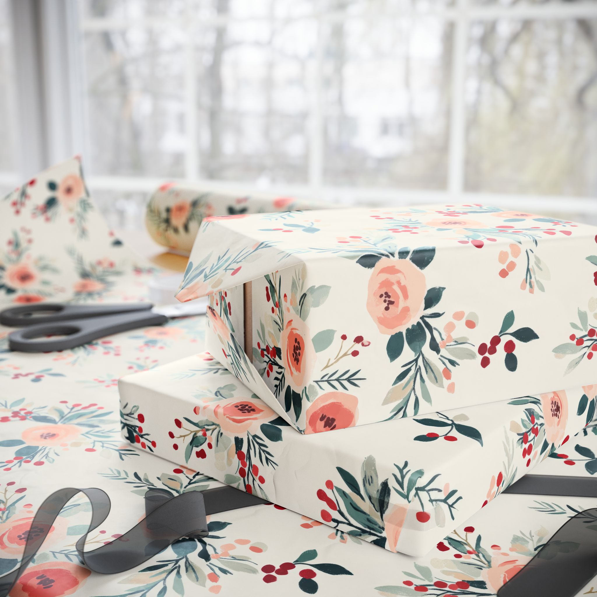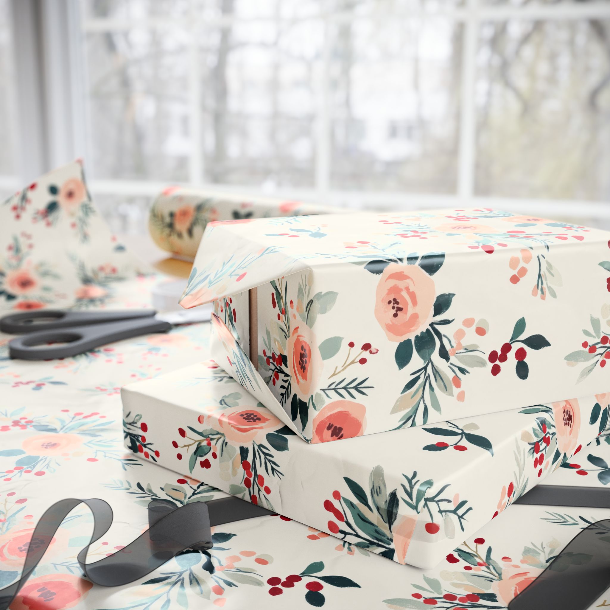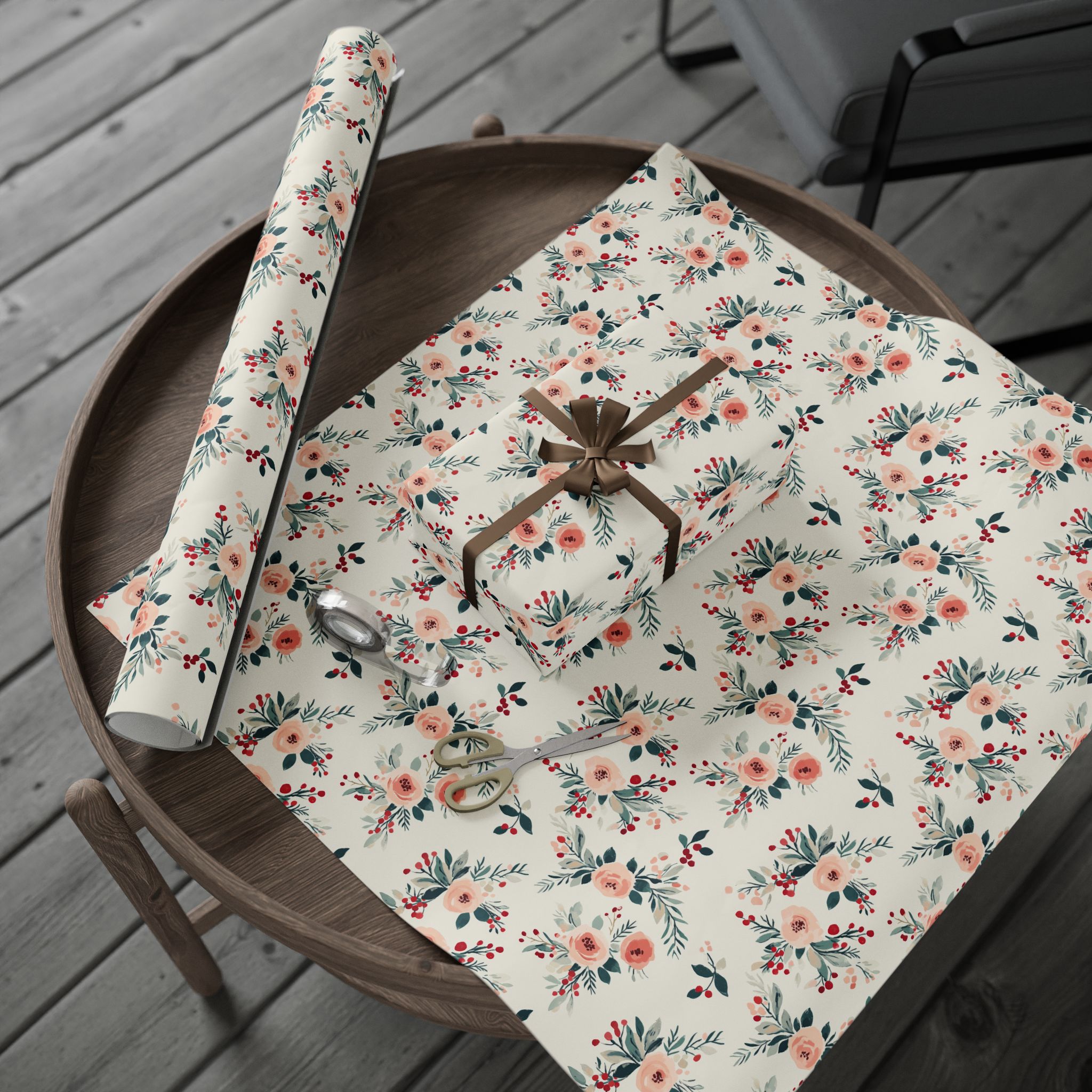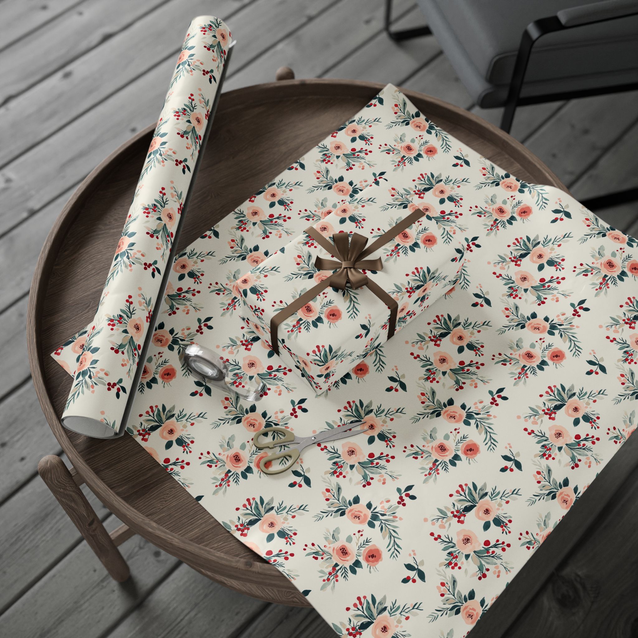 💐Bring charm and vintage elegance to your holiday packages with this Shabby Chic Christmas Floral Wrapping Paper, featuring a romantic pattern of blush pink roses, red winter berries, and soft greenery on a cream background. It’s the perfect blend of cozy cottagecore and festive sophistication—ideal for Christmas, winter weddings, or boutique-style gift wrapping.