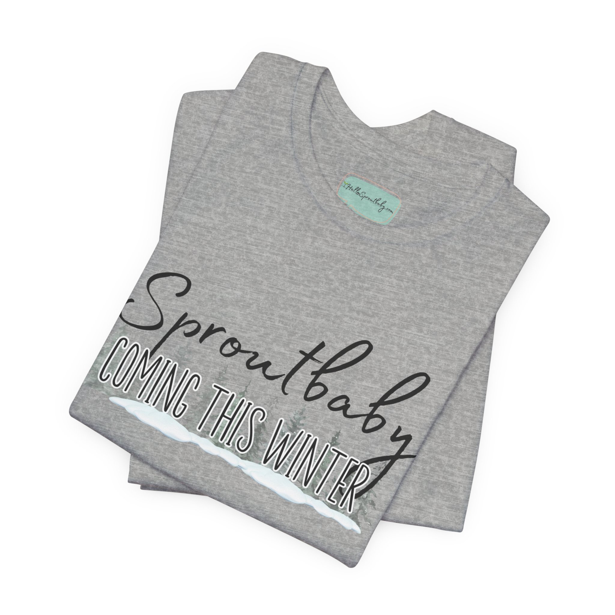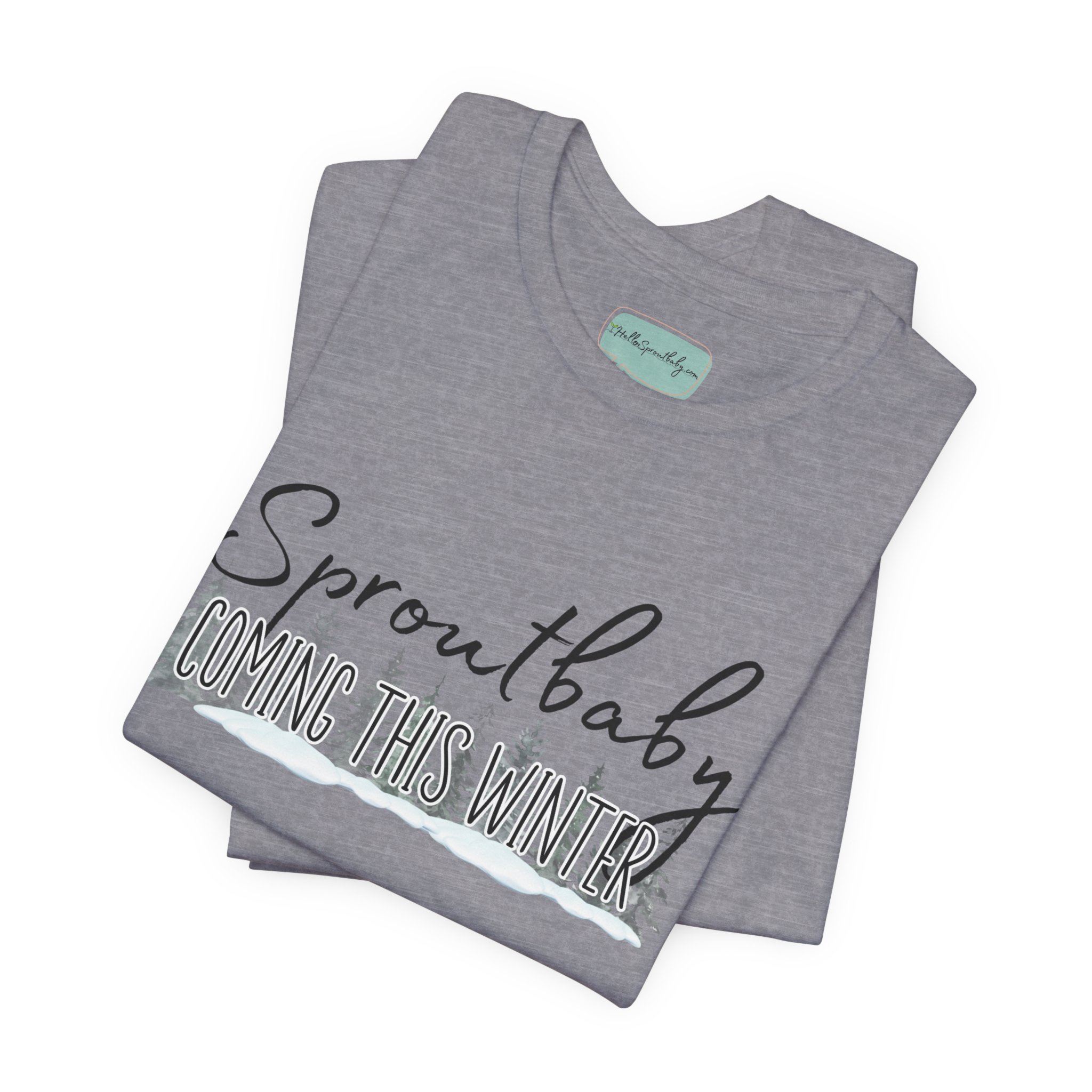 Strut your stuff in this adorable Sproutbaby Coming tee and announce to the world you have a baby arriving this winter! Wear it proudly and be comfortable while you do!