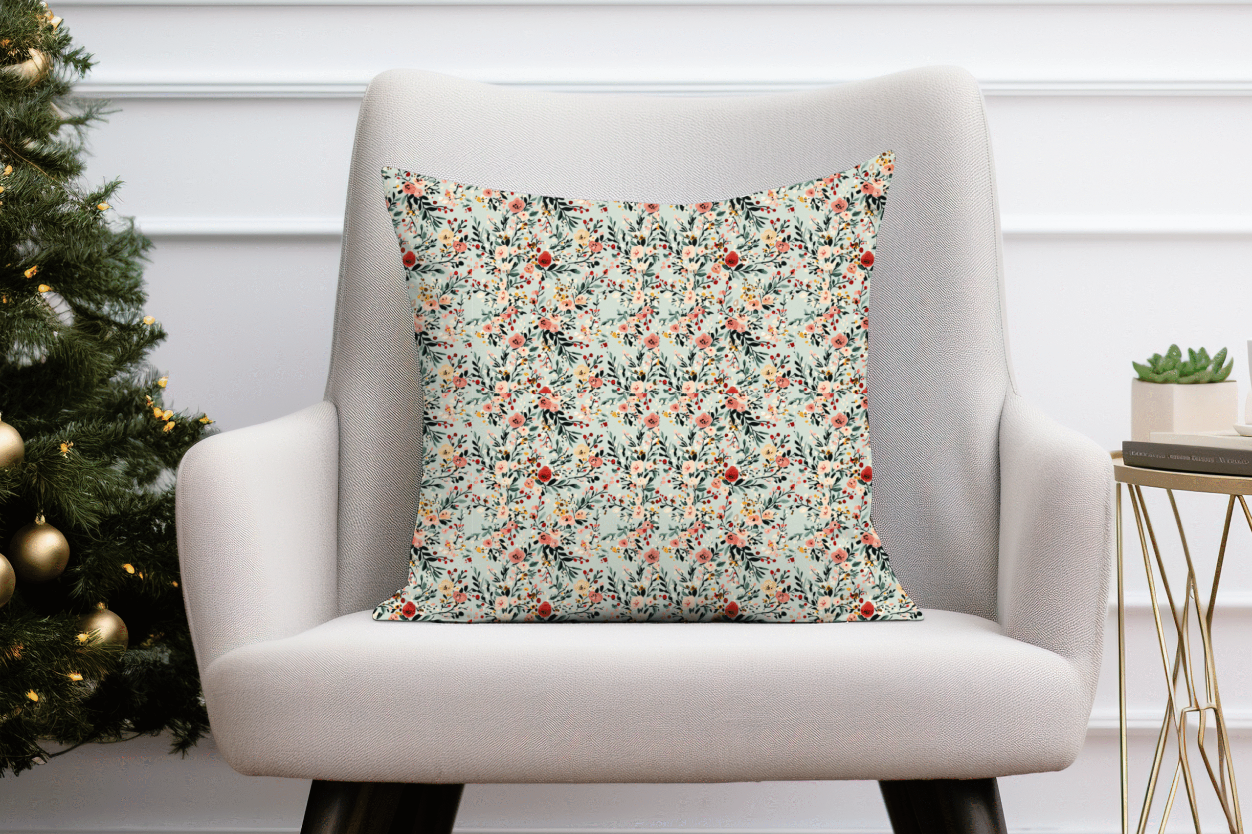 Delicate, dreamy, and perfectly cottagecore — the Very Cottage Blossom Pillow brings soft watercolor botanicals to life in a way that feels both seasonal and timeless. With a gentle scattering of hand-painted buds, berries, and leafy sprigs in warm reds, blues, and greens, this pillow captures the spirit of a cozy winter morning and the freshness of spring all at once.